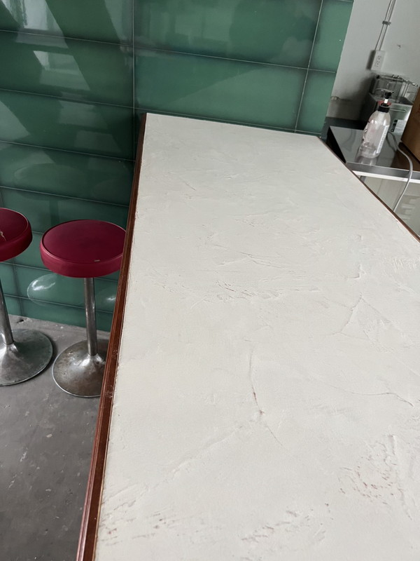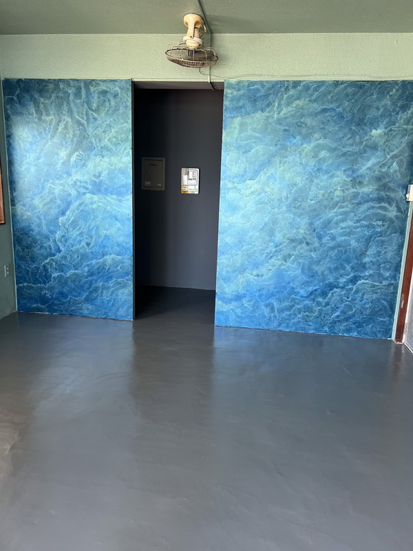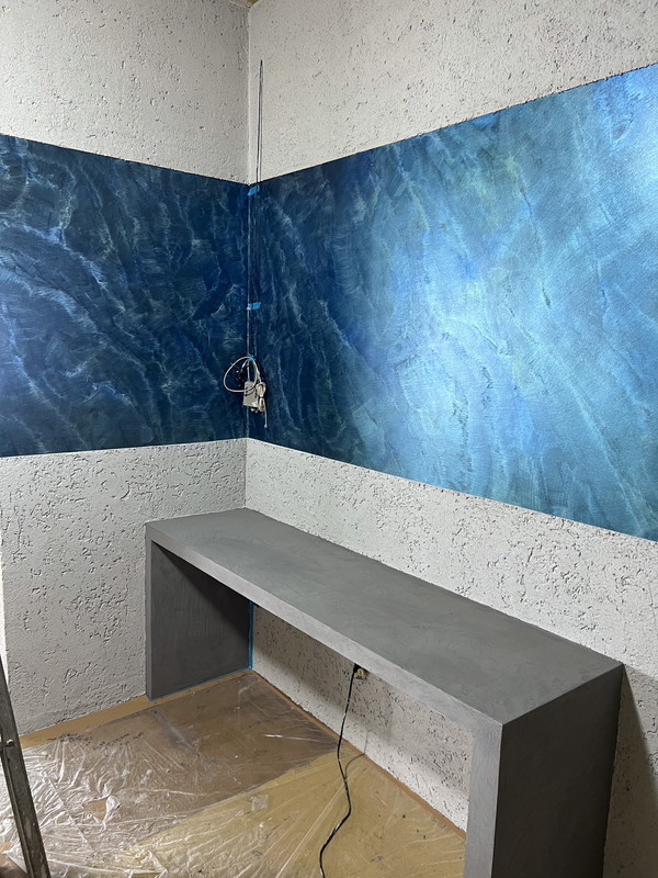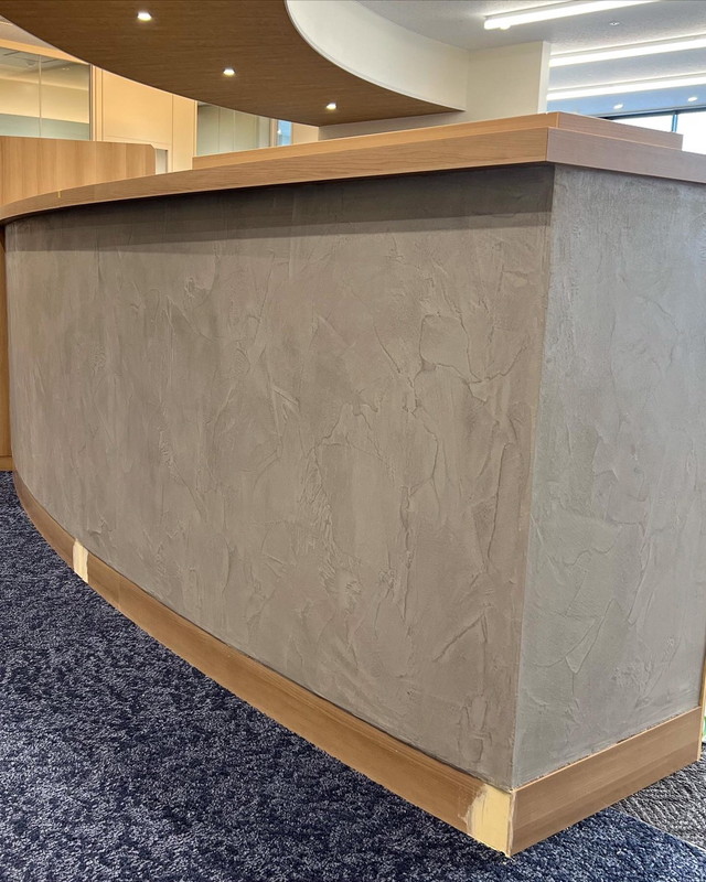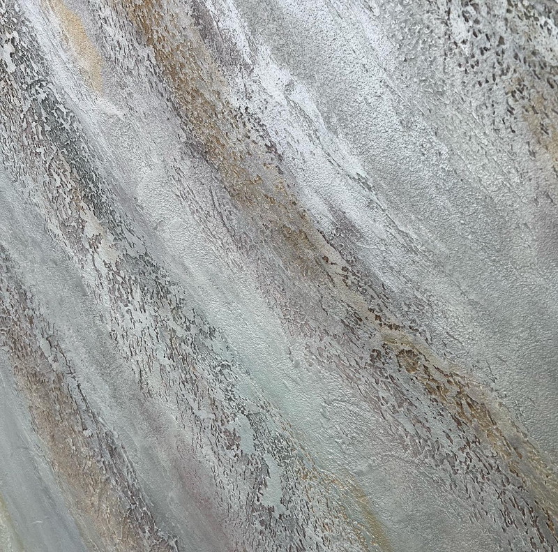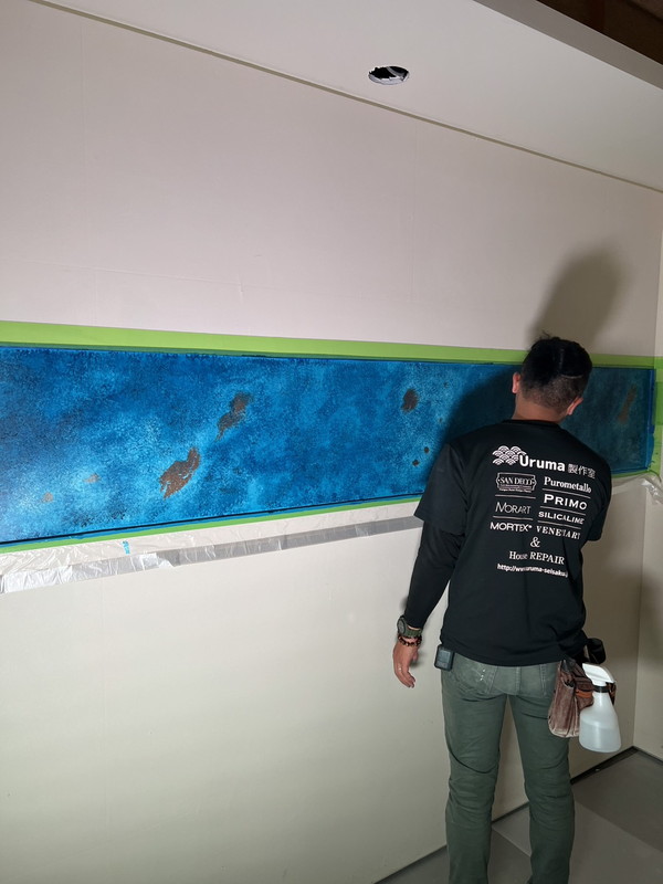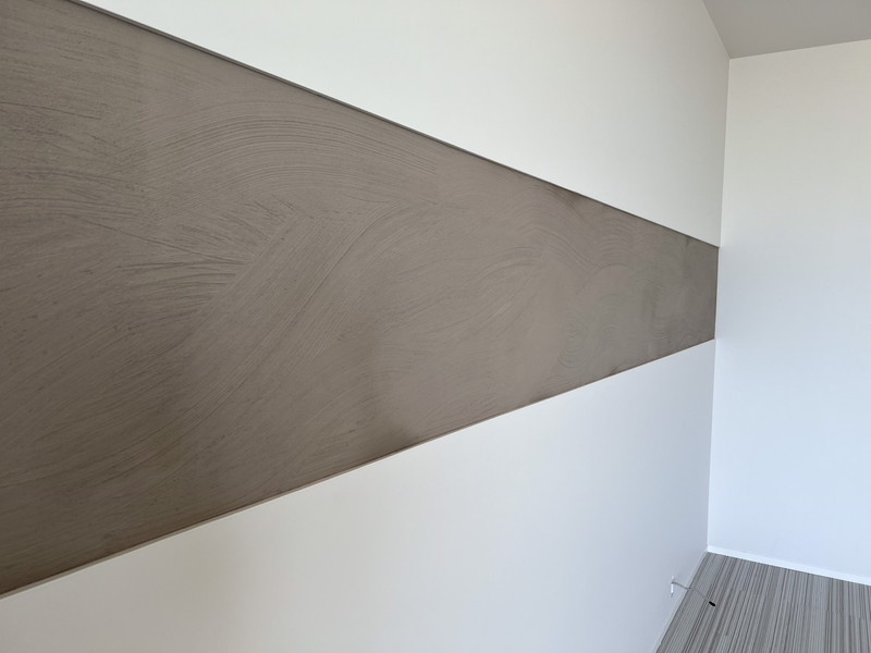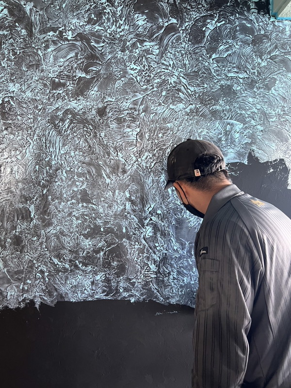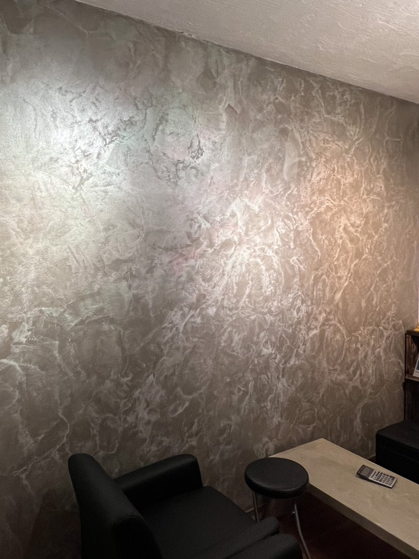 大理石調になるペースト状のペイント。水蒸気透過性が高く表面が呼吸する性質を持つ。重なり合うテクスチャーによって自然な濃淡が生まれ、磨くことで鏡面大理石のような仕上がりに。昔から高級ブランドショップやホテルに多く採用されている。マーブリングにすることでリアルな大理石調も創り出せる。