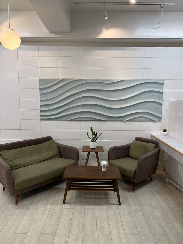 特殊な2種類のパール骨材塗料によって、白波のような独特な表情をもたらすペイント。テクスチャーの入れ方によって、独特かつダイナミックな表情を生み出すことが出来る。2種類のパール骨材塗料によって、光のあたり加減や見る角度で色の変化を楽しめる壁面を創ることができる。