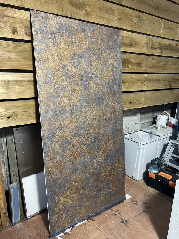 特殊なペースト状のベース塗料とメタリックパールのエフェクトフィニッシュによって、モダンかつアイアン調のような表面を創りだすことが出来る。ベース塗料を塗る際のペイントテクニックにより様々な演出を可能とし、どんな空間にも高級感・重厚感を生み出してくれるのが特徴。