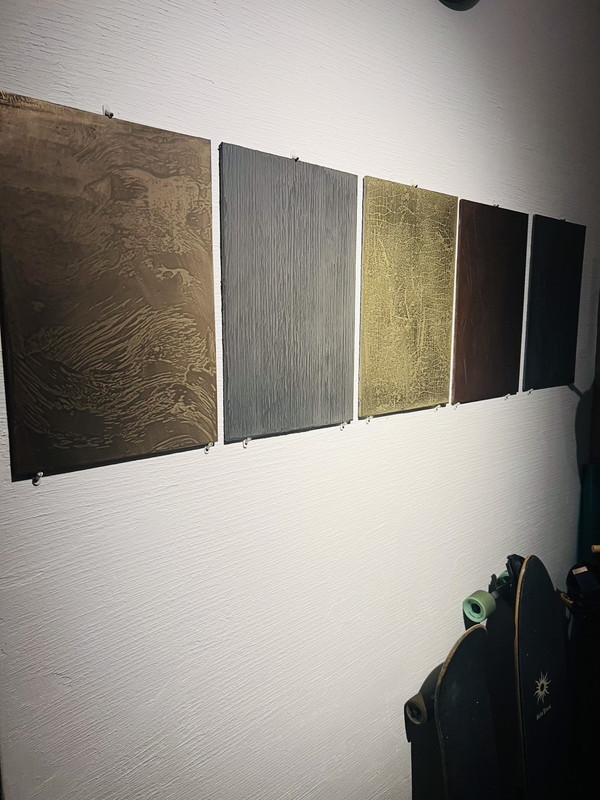 マイクロナイズド純金属粉末を含む、特殊樹脂金属性塗料。特殊な樹脂と金属粉を混ぜ合わせることで、ステンレス・真鍮・銅・コッパーのような、鉄製その物のような質感を表現することが出来るペイント。