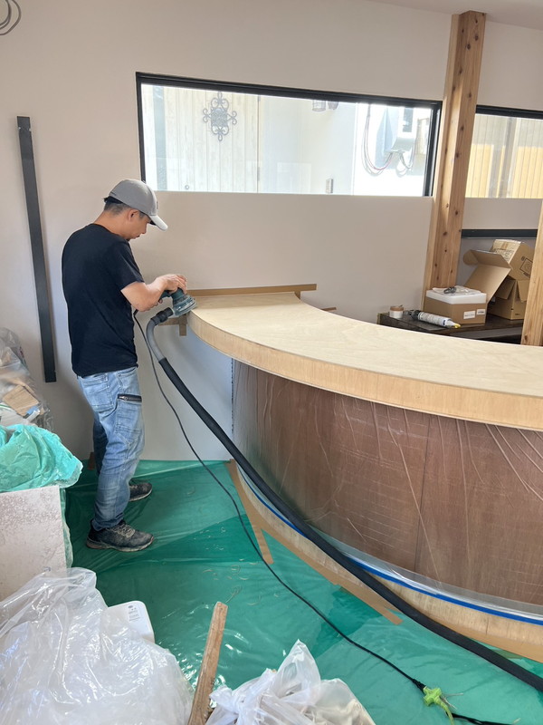 また、重量があるため暴れ気味のフローリングもフラットに仕上がりるので、その後の塗装工程もワンランク上の仕上がりとなります。