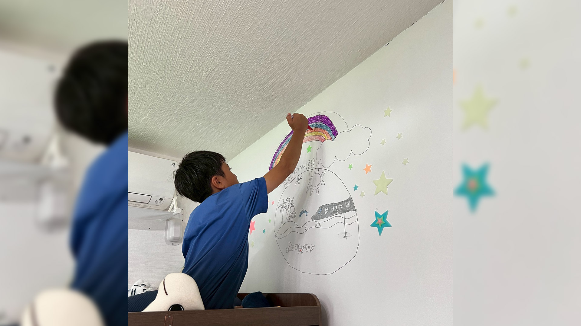 室内に岩を演出したり、部屋内に見えた梁を木に見せたりと様々なことが可能です。